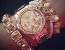 montre dorée de michael kors et gourmettes dorées