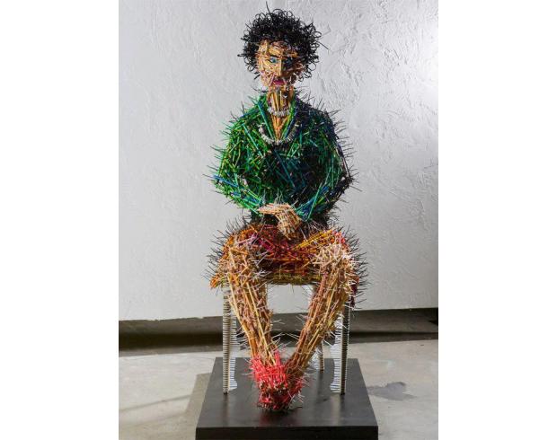 Cette oeuvre artistique consiste a rassemblé plusieurs crayons pour en faire une sculpture, créative comme idée ! Dormir Moins bête Walid