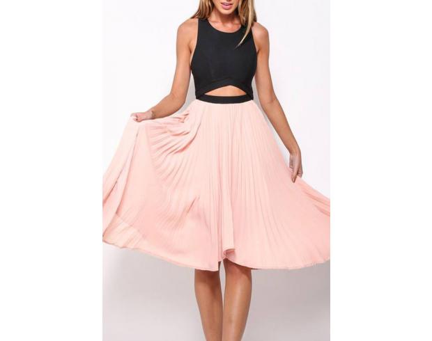Sleeveless Color Block Hollow Pleated Dress - $20.99 Buy Online >>> http://bit.ly/1UFQBvJ More Here >>> http://bit.ly/One-Piecee .